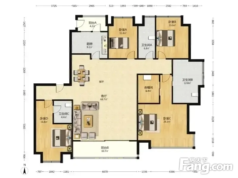房屋拥有相对宽松的尺寸,布局通透,动静分离,设计豪华