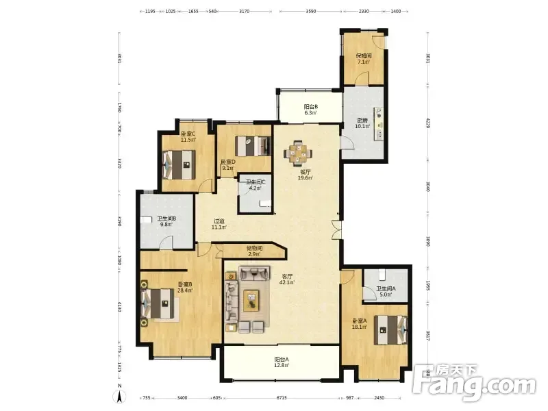 房屋拥有相对宽松的尺寸,布局通透,动静分离,设计豪华