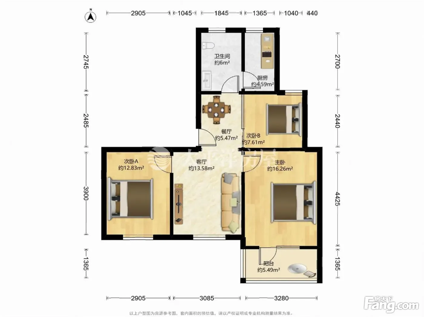 户型齐全,主打户型方正,明卫,明厨,客厅朝南二居