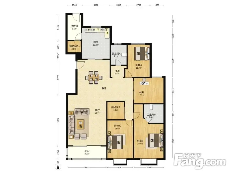 房屋拥有相对宽松的尺寸,布局通透,动静分离,设计豪华