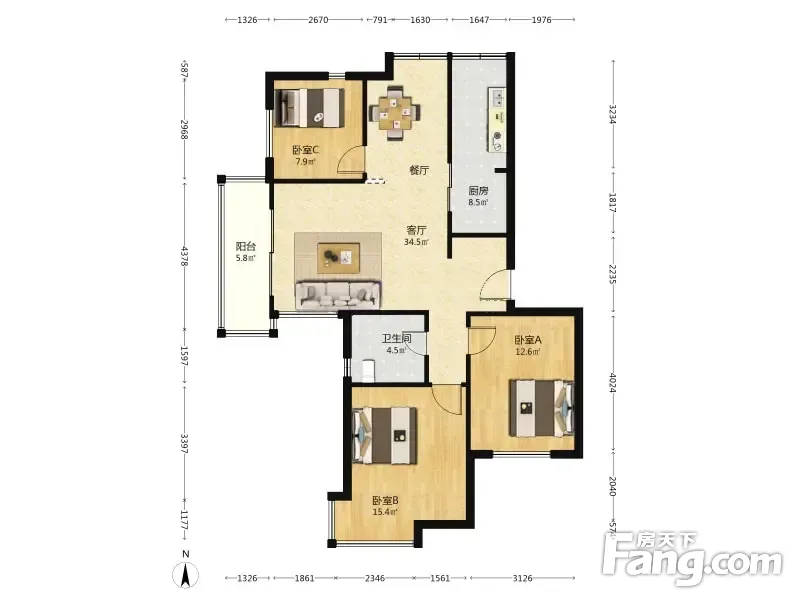 3室2厅1卫