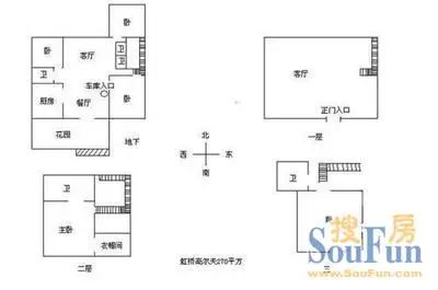 虹桥高尔夫: 产证登记建筑面积385.43平含地下室面积约135平 2015年6百万精装,2021年150万翻新中央空调地暖,2023年6月二次翻新 安静位置,不靠大马路 地下室:北端是1个套房+客厅,南端是1个套房+厨房餐厅 1楼:北进门,1个三面采光的大客厅,没有做卧室 2楼:1个大套房(含卧室+南露台+北露台+衣帽间+双台盆洗手池+浴缸+淋浴间+独卫) 3楼:2个小房间+1卫 三楼的层高比较低 地下有2块下沉式庭院,地上的环绕式花园均已硬化了土地并且净面积比较小 = 虹桥高尔夫别墅,又名罗丹别墅,地址:虹许路555弄 全人车分流 一期2002年,二期2003年 开发商:上海虹桥高尔夫俱乐部有限公司。金地物业。物业费:5元/㎡/月 绿化率:50% 外立面:纯白砖面 总建筑面积:85753平 纯别墅社区,分A、B区:249户,共11种户型 双拼:271.17㎡,274.13㎡,276.24㎡,278.27㎡ 独栋:341.72㎡,384.69㎡,385.43㎡,399.61㎡,423.31㎡,449.35㎡,911.38㎡ 地理位置优越,交通出行便利,附近教育医疗商业等配套都齐全且成熟 小区西边是虹梅路,东边是虹许路/中环路,小区北边是近10号线龙溪站和71路中运量公交站;距中环高架入口约5分鈡,去延安高架、内环高架等快速路便捷,可快速抵达虹桥机场、虹桥火车站等交通枢纽以及徐家汇、静安寺、南京西路、陆家嘴等市中心的知名商圈 小区临近吴中路商圈和虹桥古北商圈,商业配套资源醇熟,2公里范围内高达10+个商业体——万象城、爱情海购物公园、老外街、韩国街、原竹琥珀迷你综合体、1699商业广场、高岛屋百货、黄金城道步行街、金虹桥商场、虹桥南丰城等 周边外籍人士众多,国际化的生活理念及生活氛围浓郁。周边国际/私立学校云集,上海不列颠英国国际学校、耀中国际学校、虹桥国际学校、长宁国际学校、协和双语学校、宋庆龄幼儿园、包玉刚实验学校等,满足高端教育需求