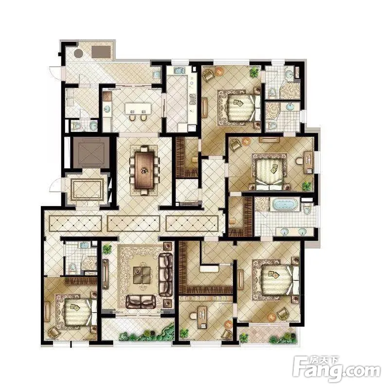 万源城御璄户型主要有231平-297平的露台,南北通透的四居 、297平-333平的客厅朝南,三开间朝南,主卧套间的五居 。