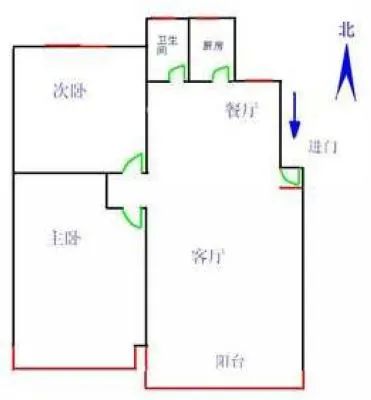 户型齐全,主打明厨,明卫,客厅朝南,全明格局,主卧朝南二居
