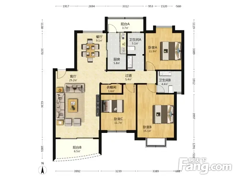 3室2厅1卫