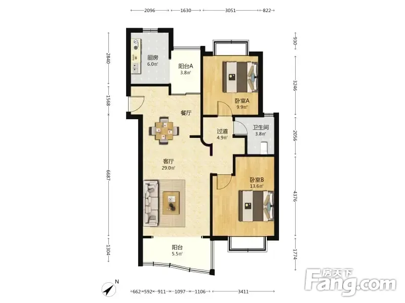 户型齐全,主打户型方正,双阳台,主卧朝南三居
