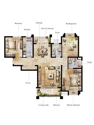 房屋拥有相对宽松的尺寸,布局通透,动静分离,设计豪华