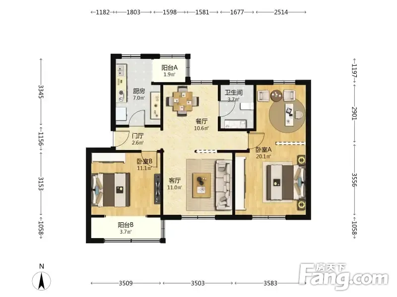 房屋拥有相对宽松的尺寸,布局通透,动静分离