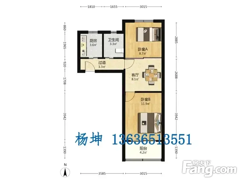 户型齐全,主打明卫,明厨,主卧朝南二居