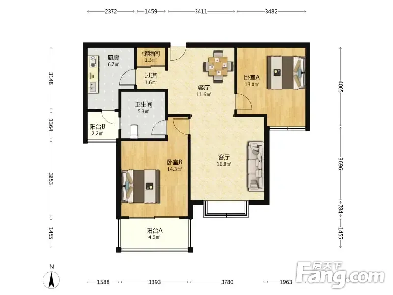 新凤城 2室2厅 96.97平