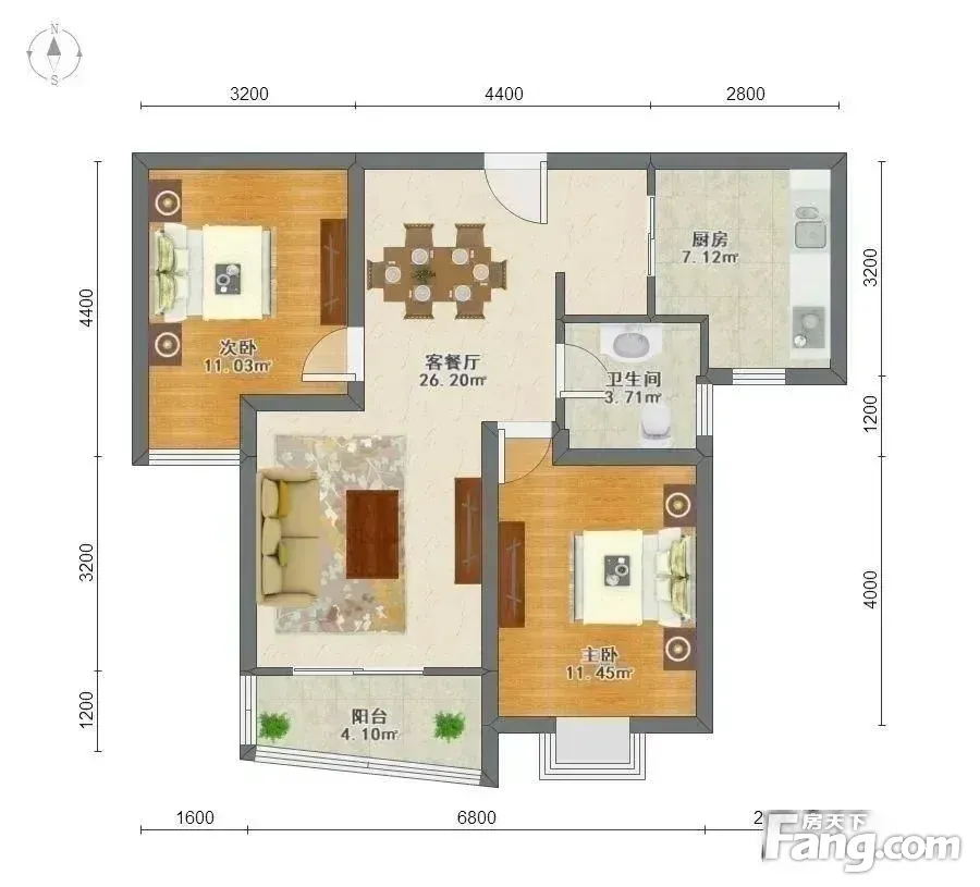 户型齐全,主打南北通透,全明格局,户型方正二居