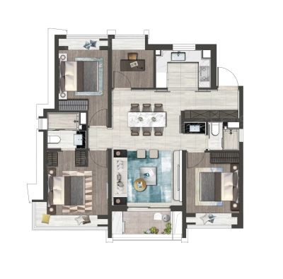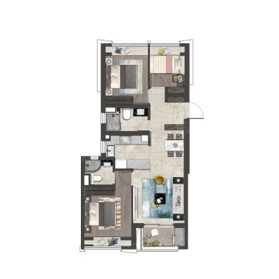 户型齐全,主打南北通透,全明格局,户型方正三居