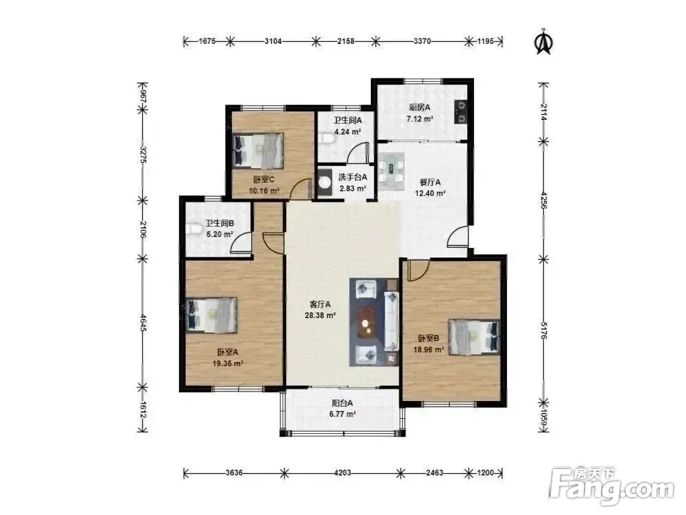 户型齐全,主打户型方正,明卫,明厨,双卧朝南,主卧朝南三居