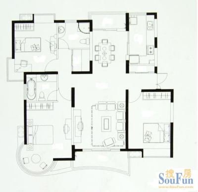 房屋拥有相对宽松的尺寸,布局通透,动静分离,设计豪华
