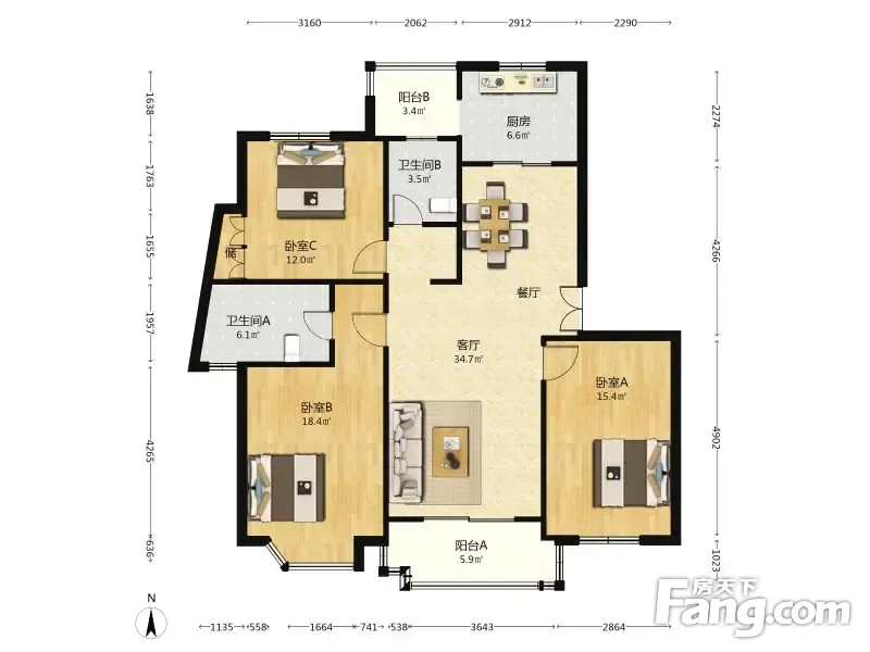 3室2厅1卫