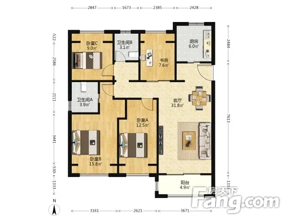 户型齐全,主打户型方正,采光充足,主卧朝南三居