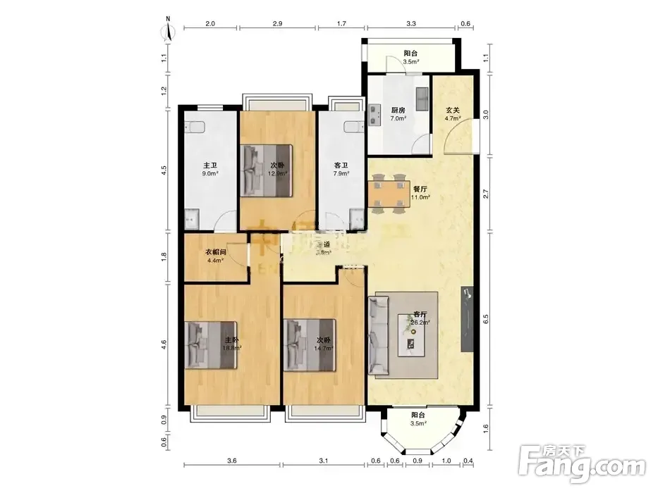 房屋拥有相对宽松的尺寸,布局通透,动静分离,设计豪华