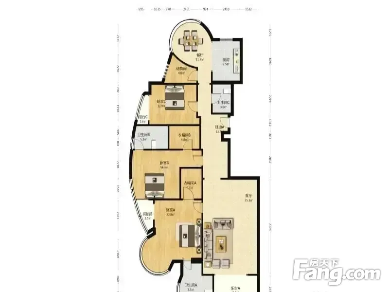 房屋拥有相对宽松的尺寸,布局通透,动静分离,设计豪华