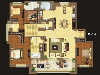 陆家嘴公馆户型主要有282平-296平的户型方正,独立衣帽间,明卫,双卧朝南,主卧朝南的四居 。