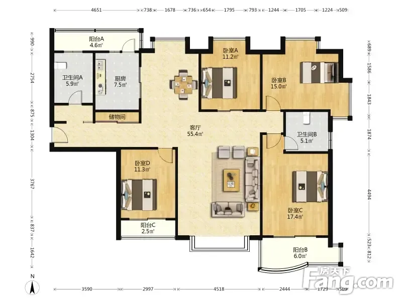 天际花园 4室2厅 179.87平