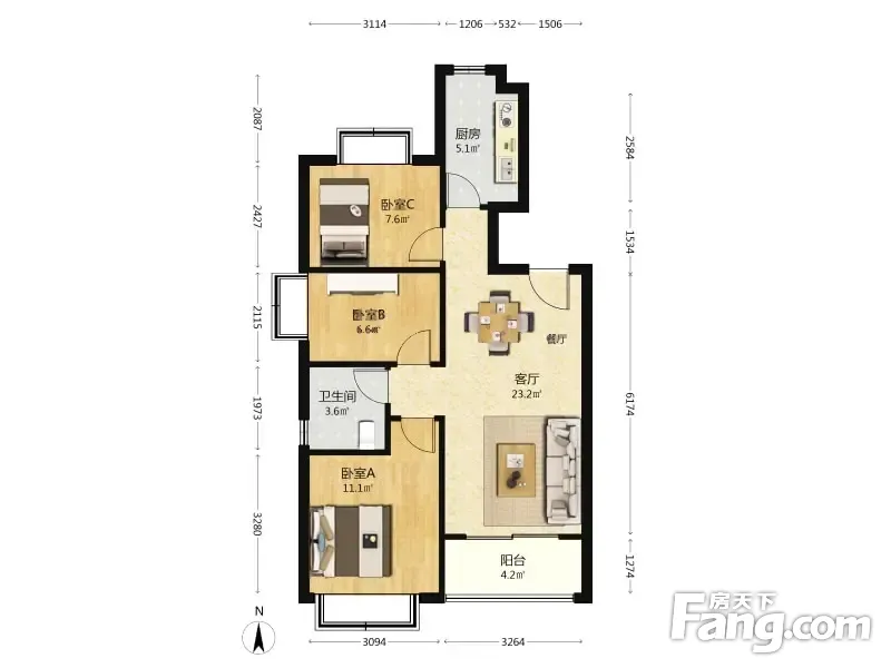 3室2厅1卫