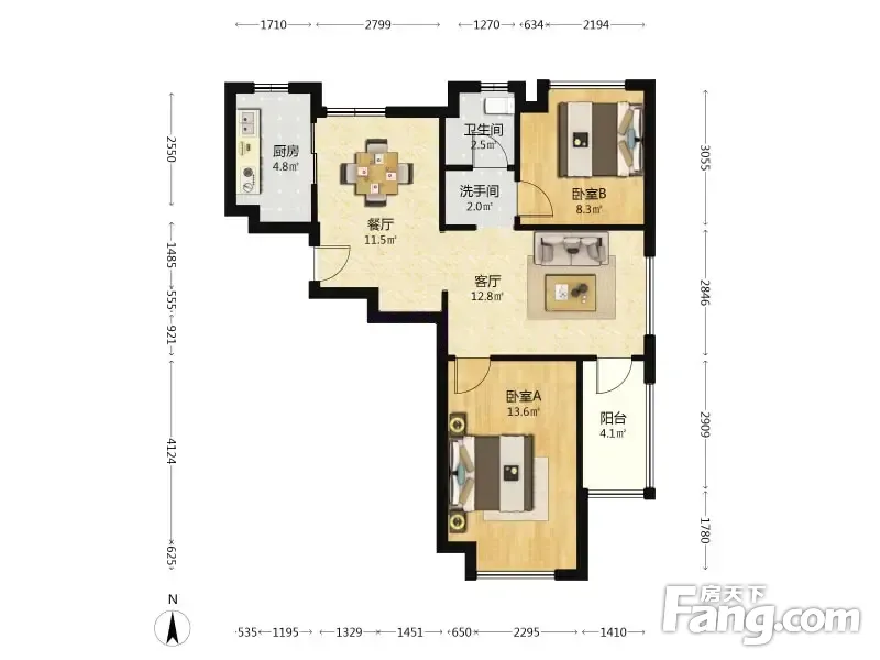 户型齐全,主打客厅朝南,带衣帽间,餐客分离二居