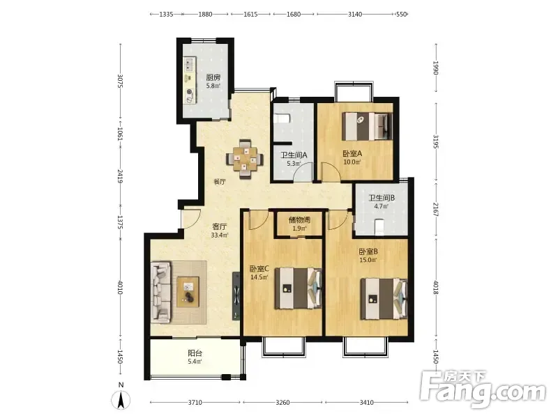 3室2厅1卫