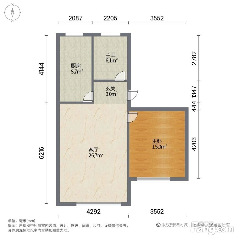 永旭家苑 58.12平1居 南北向精装修 视野无遮挡