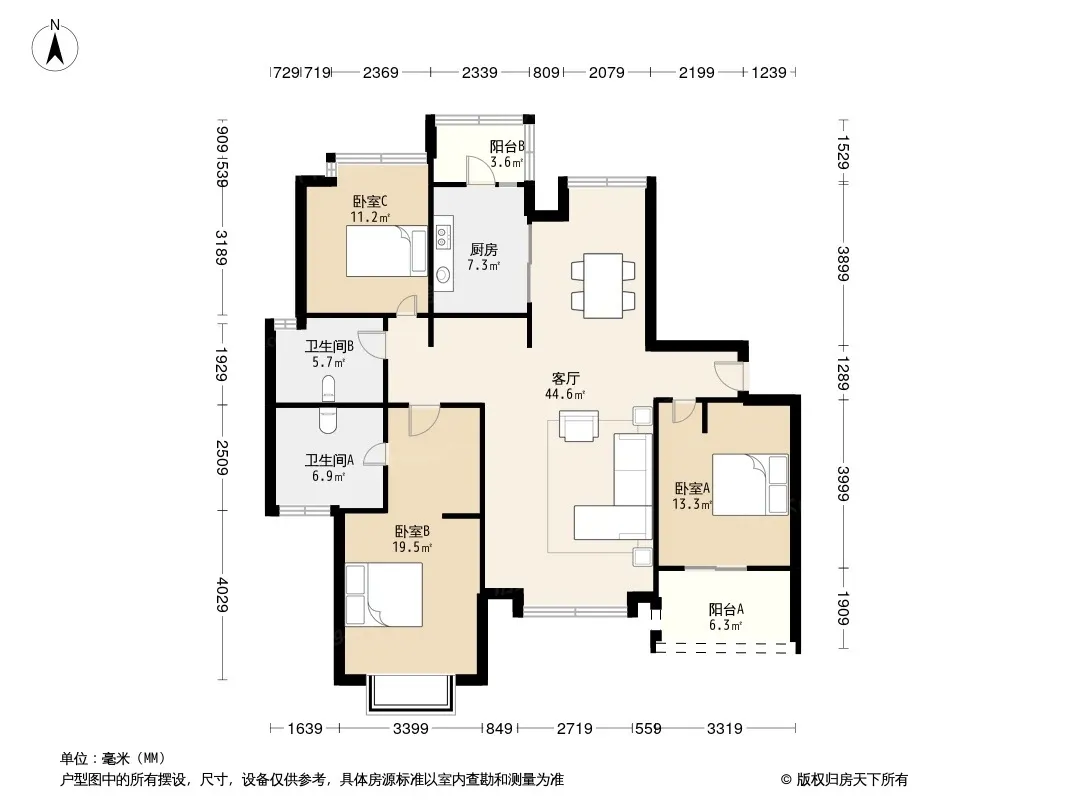 户型齐全,主打户型方正,明厨,明卫,客厅朝南,主卧朝南三居