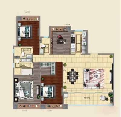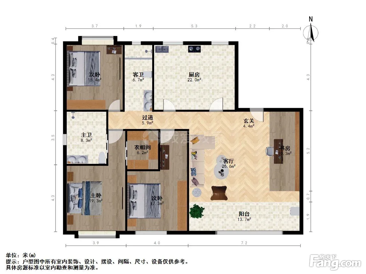 户型齐全,主打户型方正,明卫,明厨,独立衣帽间,主卧朝南三居