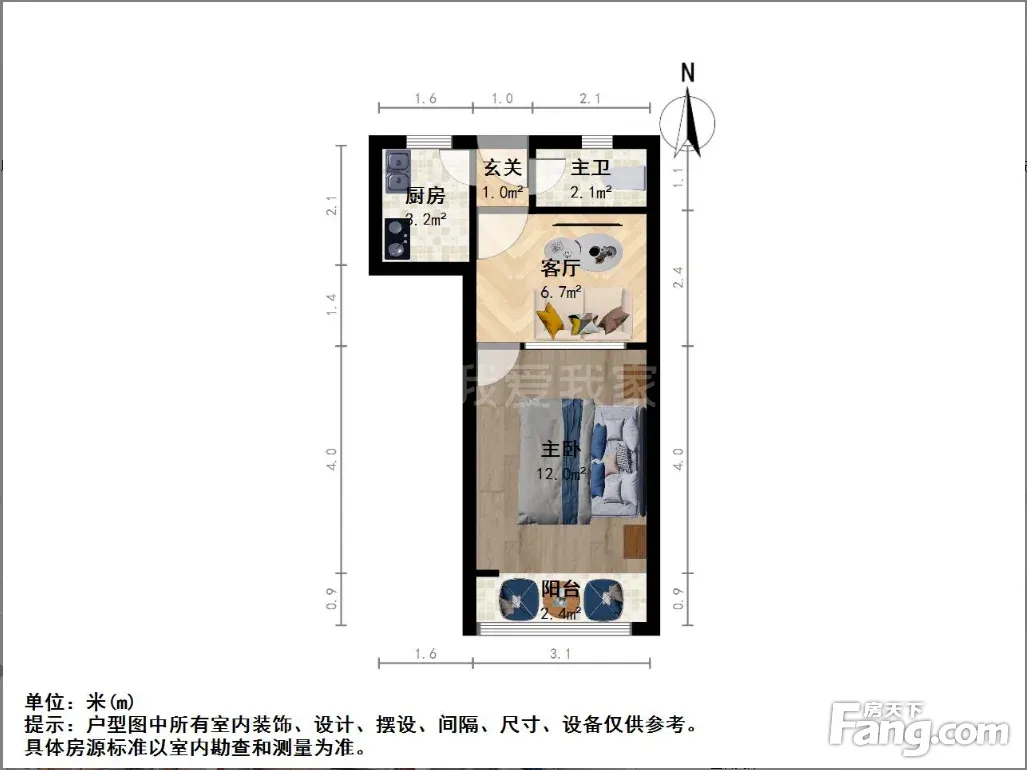 户型齐全,主打户型方正,明卫,明厨,客厅朝南,全明格局一居