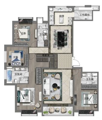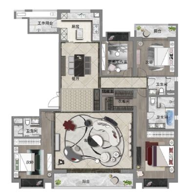 房屋拥有相对宽松的尺寸,布局通透,动静分离,设计豪华