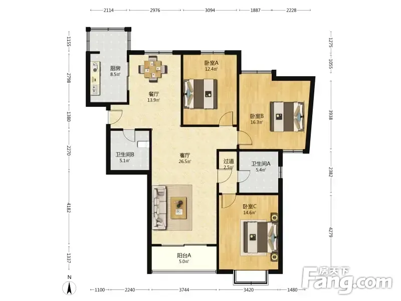 天宝绿洲 3室2厅 147.02平