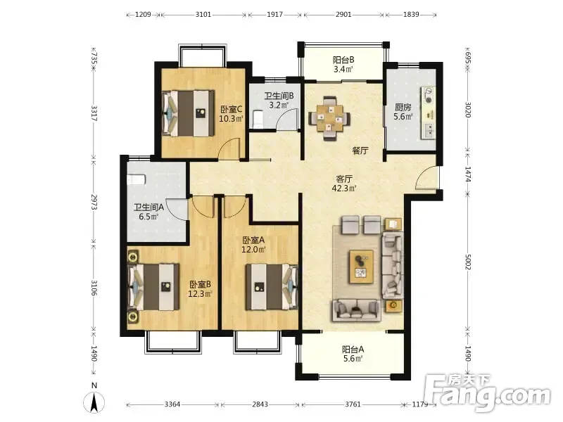 南北周 3室2厅 131.91平