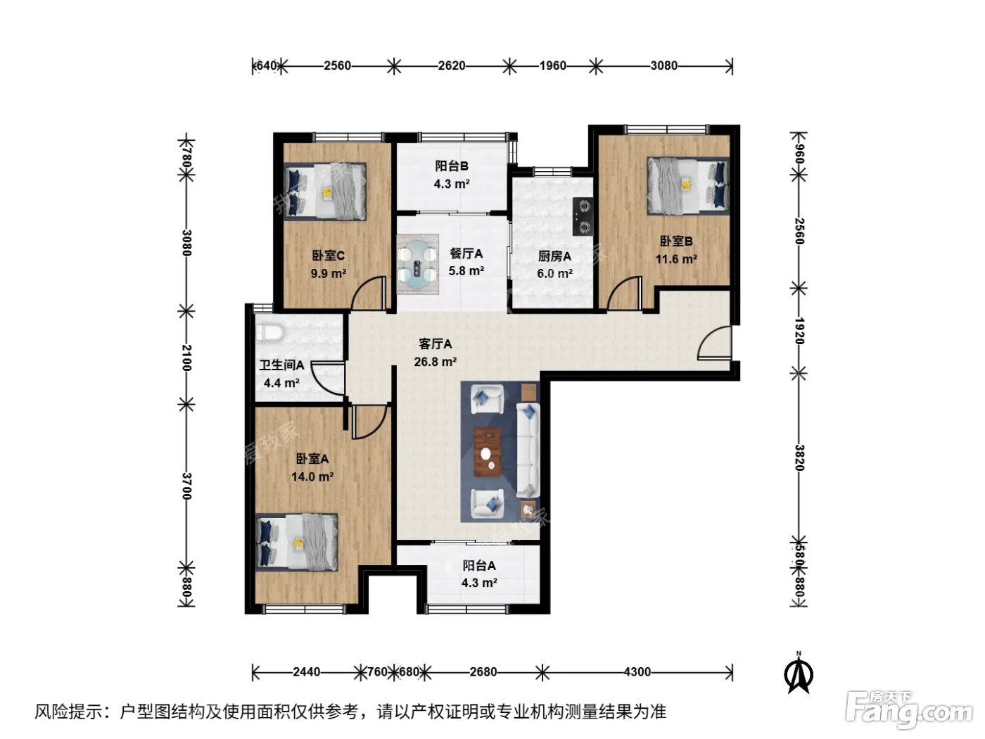*获取完整户型报告,同时会有免费语音讲解服务