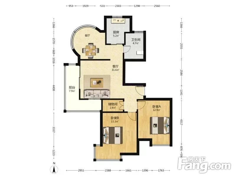户型齐全,主打客厅朝南,户型方正,明厨,明卫,全明格局,主卧朝南二居