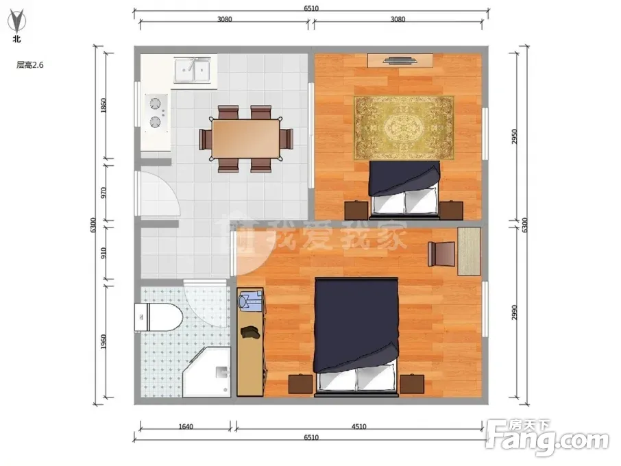 户型齐全,主打明卫,明厨,客厅朝南,全明格局二居