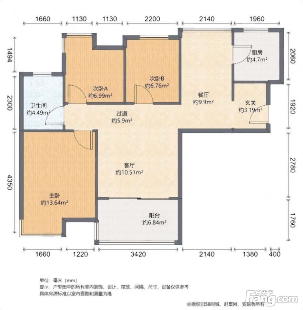 户型齐全,主打户型方正,明卫,主卧朝南三居