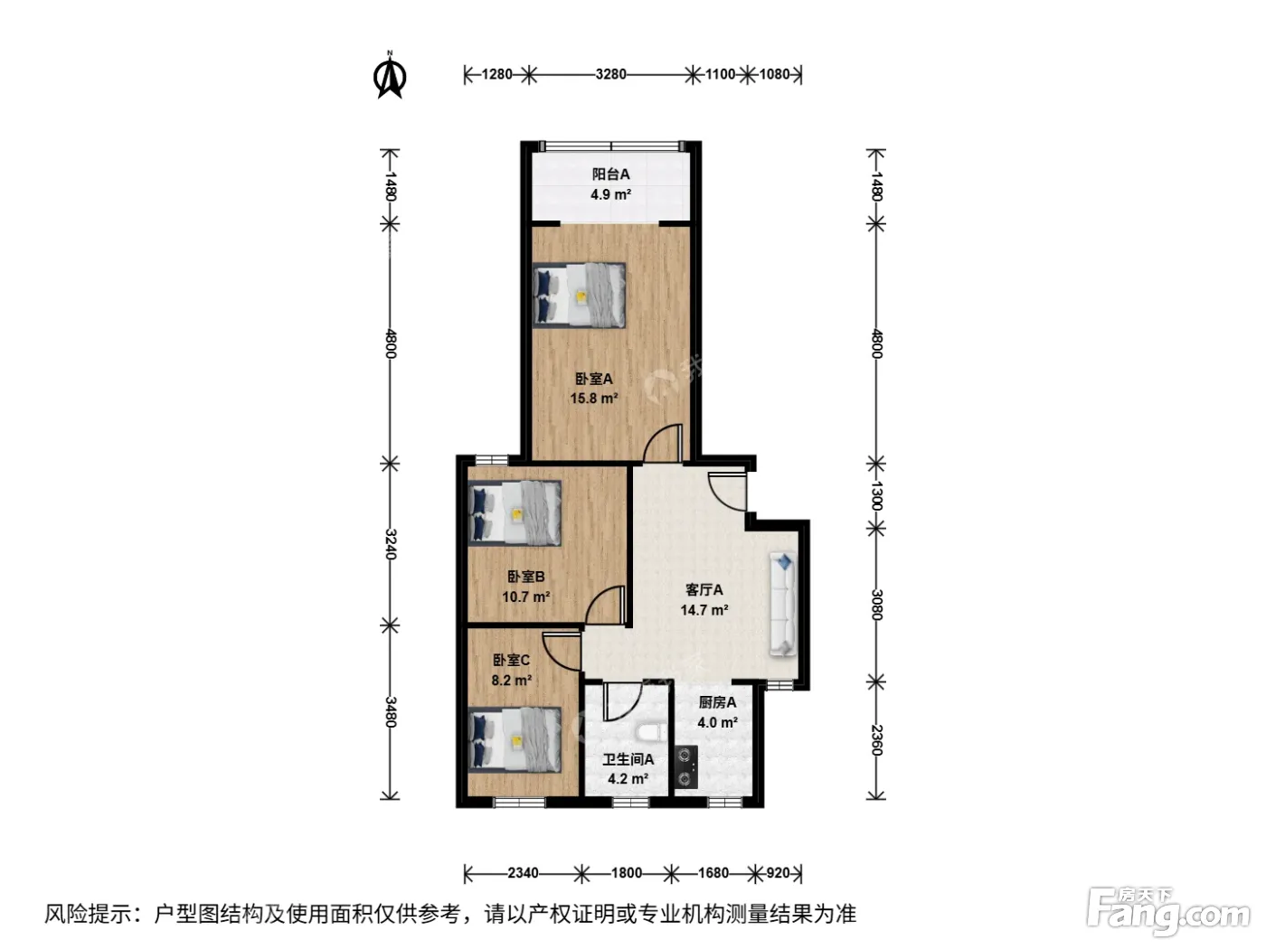户型介绍:此房户型为3室1厅1卫,建筑面积为73.85平米,朝向为南。