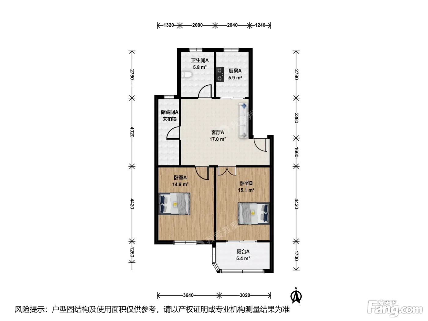 户型介绍:此房户型为2室1厅1卫,建筑面积为85.49平米,朝向为南。