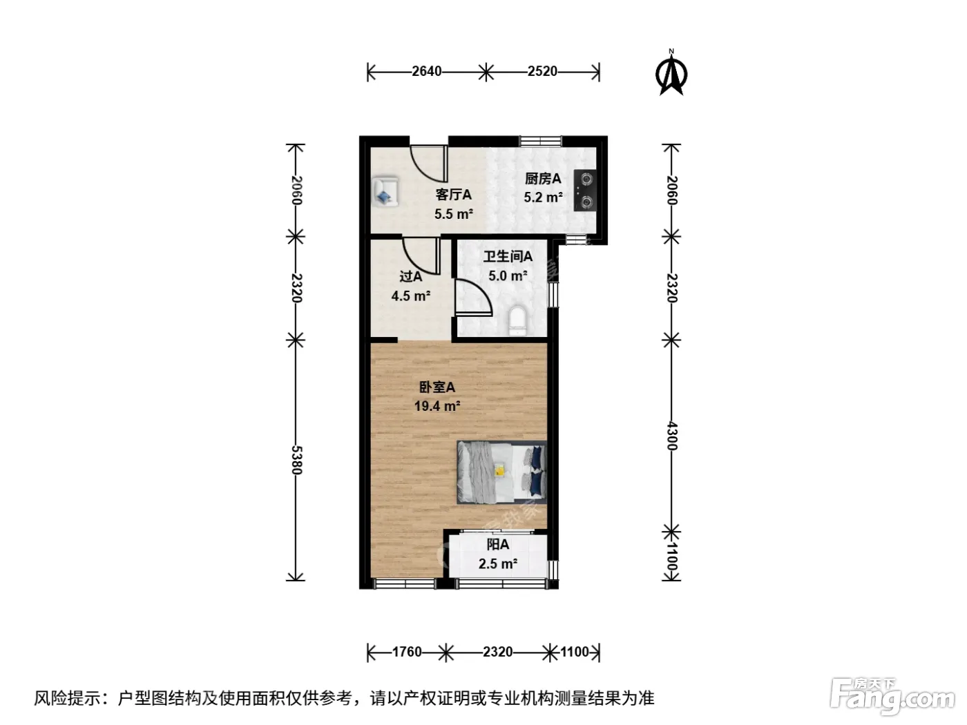 户型介绍:此房户型为1室1厅1卫,建筑面积为52.54平米,朝向为南。