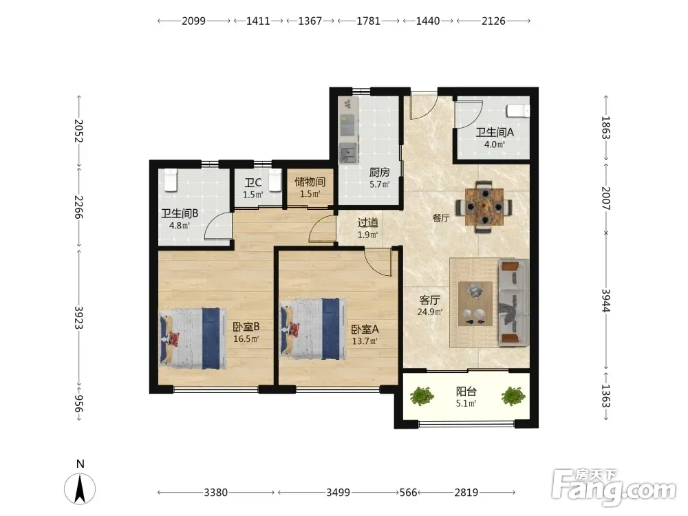 2室2厅1卫
