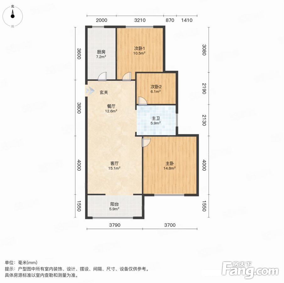 户型齐全,主打明卫,明厨,双阳台,双卧朝南,主卧朝南三居