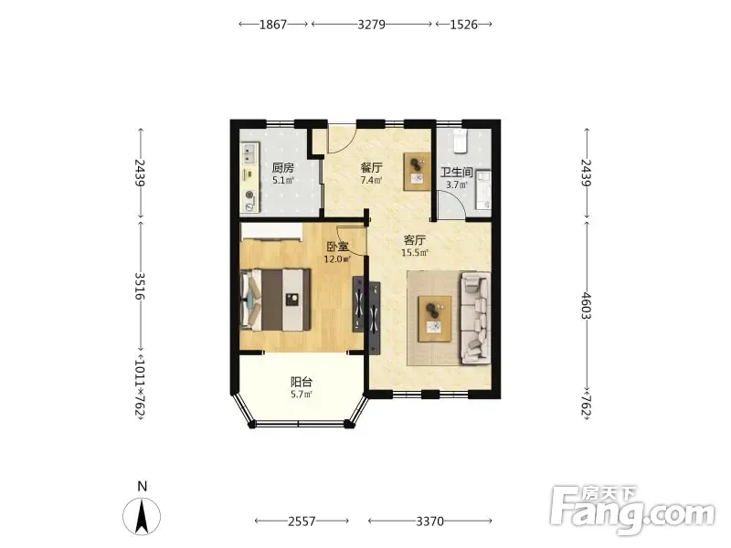 户型齐全,主打明厨,明卫,客厅朝南,全明格局二居