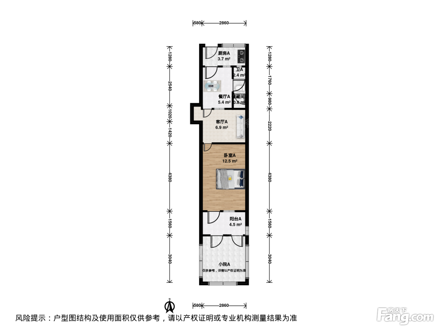 户型介绍:此房户型为1室2厅1卫,建筑面积为38.31平米,朝向为南。