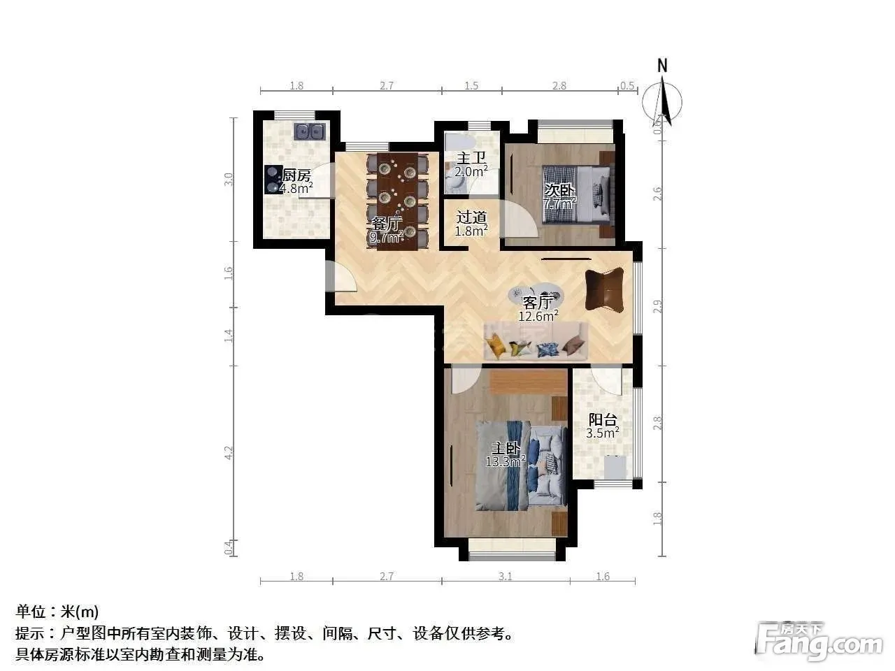 户型齐全,主打客厅朝南,带衣帽间,餐客分离二居
