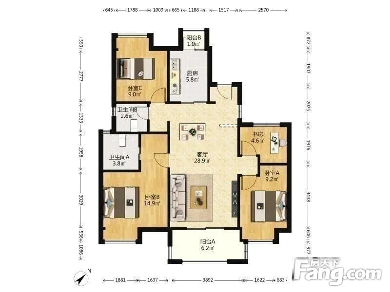 户型齐全,主打南北通透 ,户型方正四居