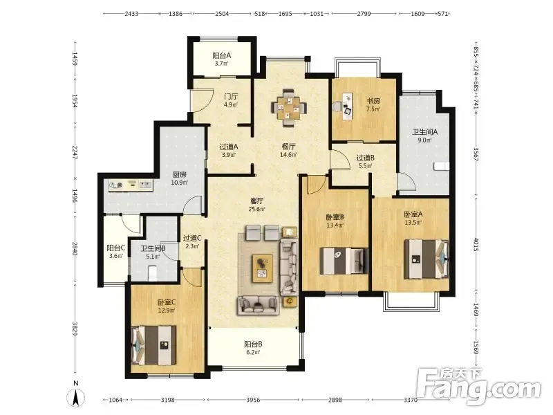房屋拥有相对宽松的尺寸,布局通透,动静分离,设计豪华