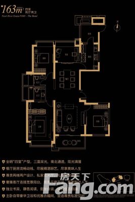 珠江铂世外滩界户型主要有161平-163平的南北通透,户型方正,主卧带卫,带衣帽间的四居 、132平-132平的南北通透,全明格局,户型方正,主卧带卫,L型厨房的三居 、199平-199平的全明格局,主卧套间的五居 。