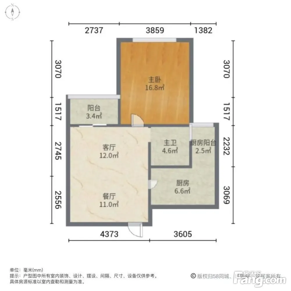 户型齐全,主打明厨,明卫,客厅朝南,全明格局,主卧朝南二居